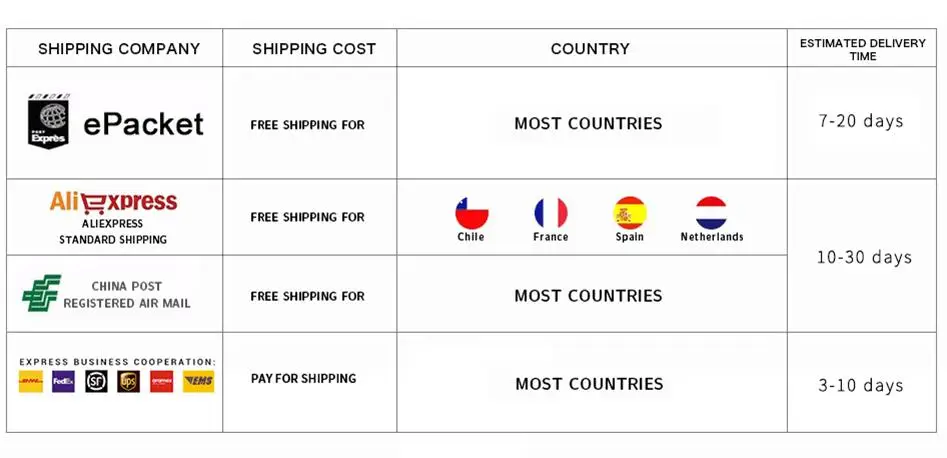 4.The shipping time during Holiday Season (Christmas, Chinese New Year etc.) could be longer than usual time. Please add another 5-10 days as