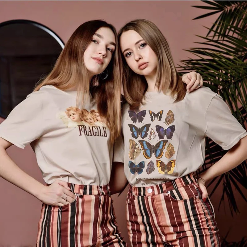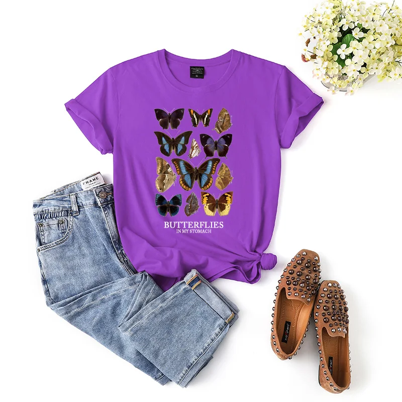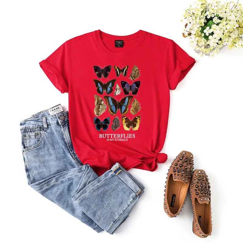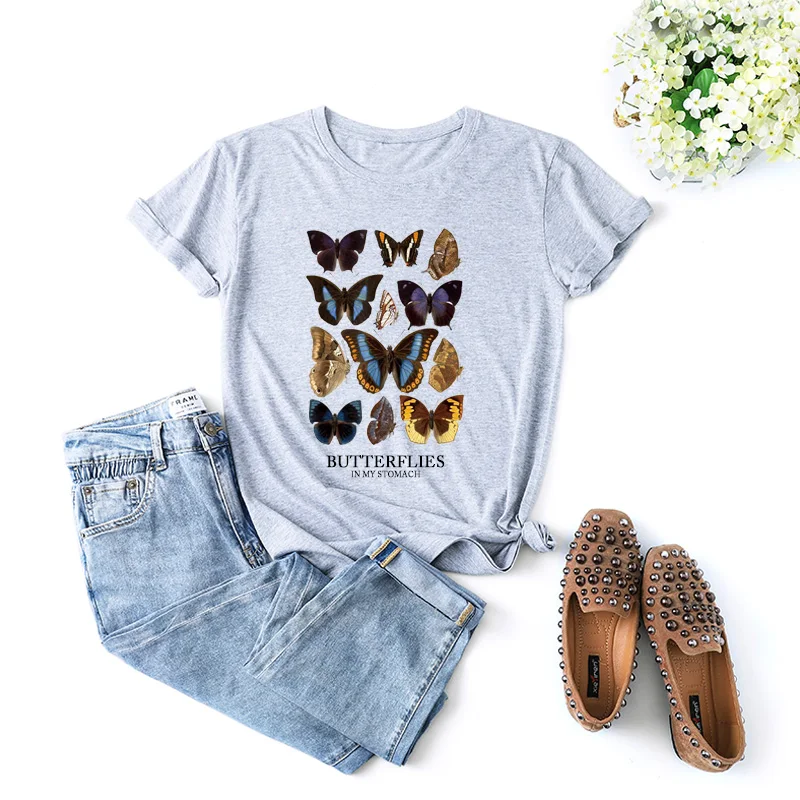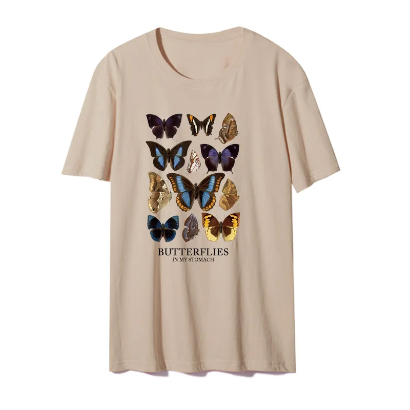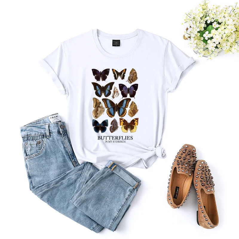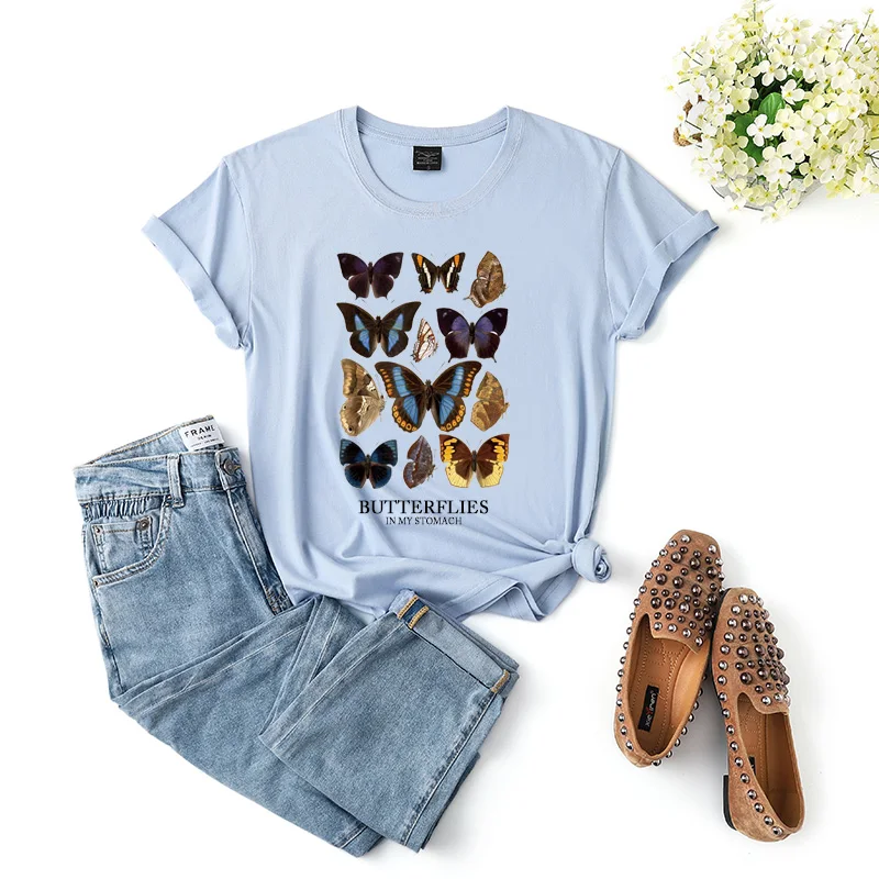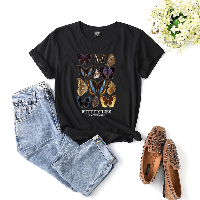 Butterfly Aesthetic T Shirt Butterflies In My Stomach Graphic Tee Harajuku Hipster Cute Flower Butterfly Women's Casual T-shirt