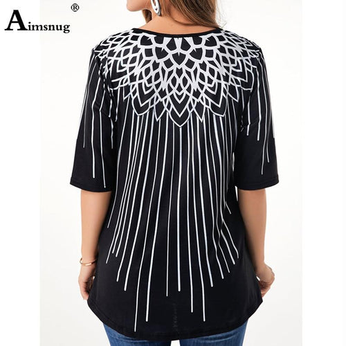 Plus size 4xl 5xl Women New Elegant Summer Fashion Elasticity Female Casual Loose Ladies print Top Half Sleeve T-ShirtTee Shirt