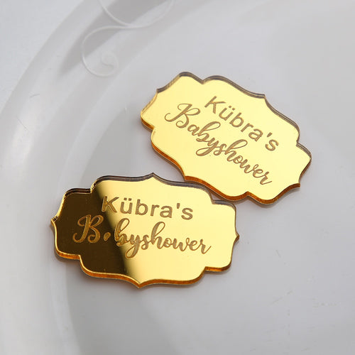 ttt 20pcs Acrylic Mirror Gold Wedding Custom Name Personalized Tags Invitation Cards Birthday Party Babyshowers Guest Gifts