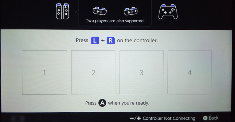 1. 1st time to connect: Press and hold the HOME button 5 seconds on "Change Grip/Order" page, and 4 indicators blinks fast. 2. 2nd time to connect: Press the HOME button on any page,and 4 indicators blinks slowly.