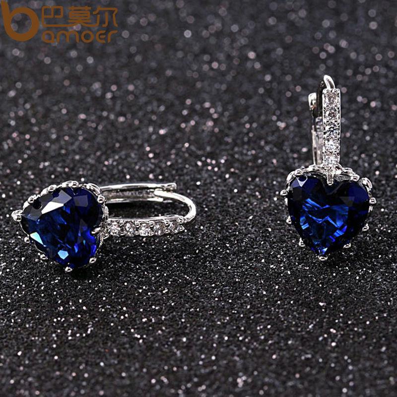 BAMOER Stones Heart Shape Trendy & Elegant AAA Zircon Stud Earring YIE095