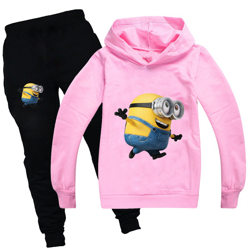 Fall Winter Halloween Outfits for Girls Minions Kawaii Children Clothing Set Cotton Christmas Thanksgiving Boys Clothes
