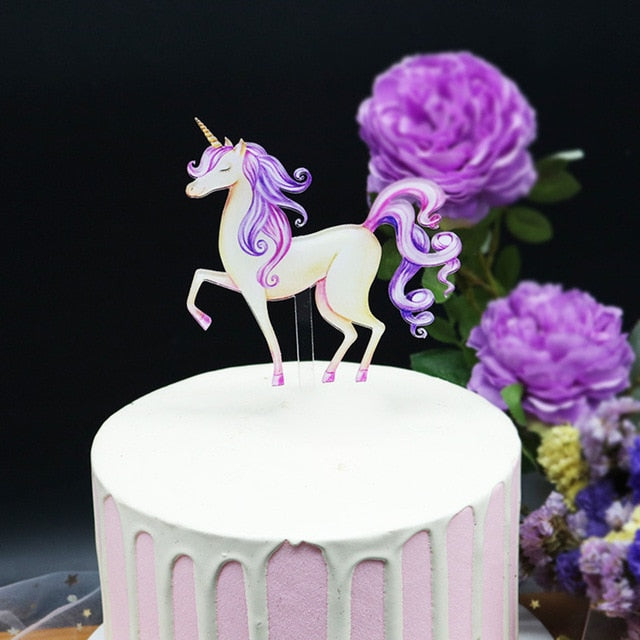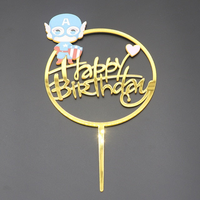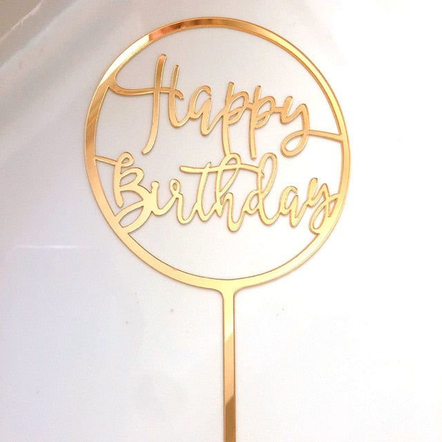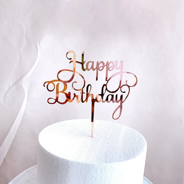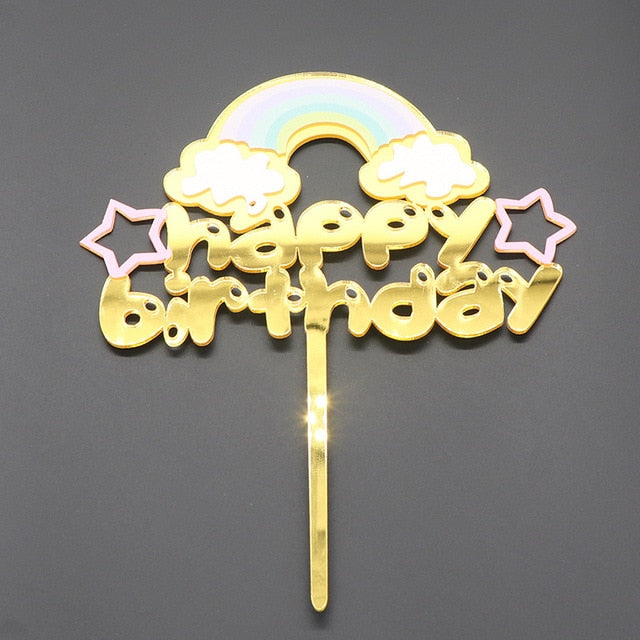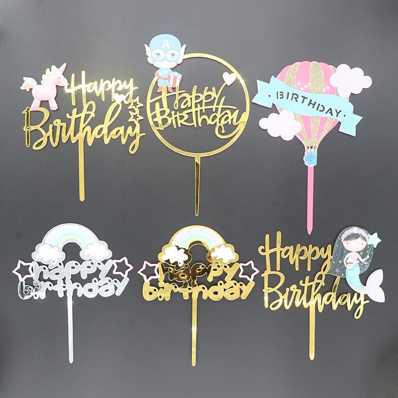 Gold Acrylic Happy Birthday Cake Toppers Unicorn Flamingo Cupcake Topper For Wedding Baby Shower Mermaid Party Cake Decorations