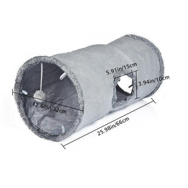 Gray Collapsible Cat Tunnel Funny Plush Cat Tunnel Kitten Play Tube with Ball Interactive Toy Ball Cat Pet Toy