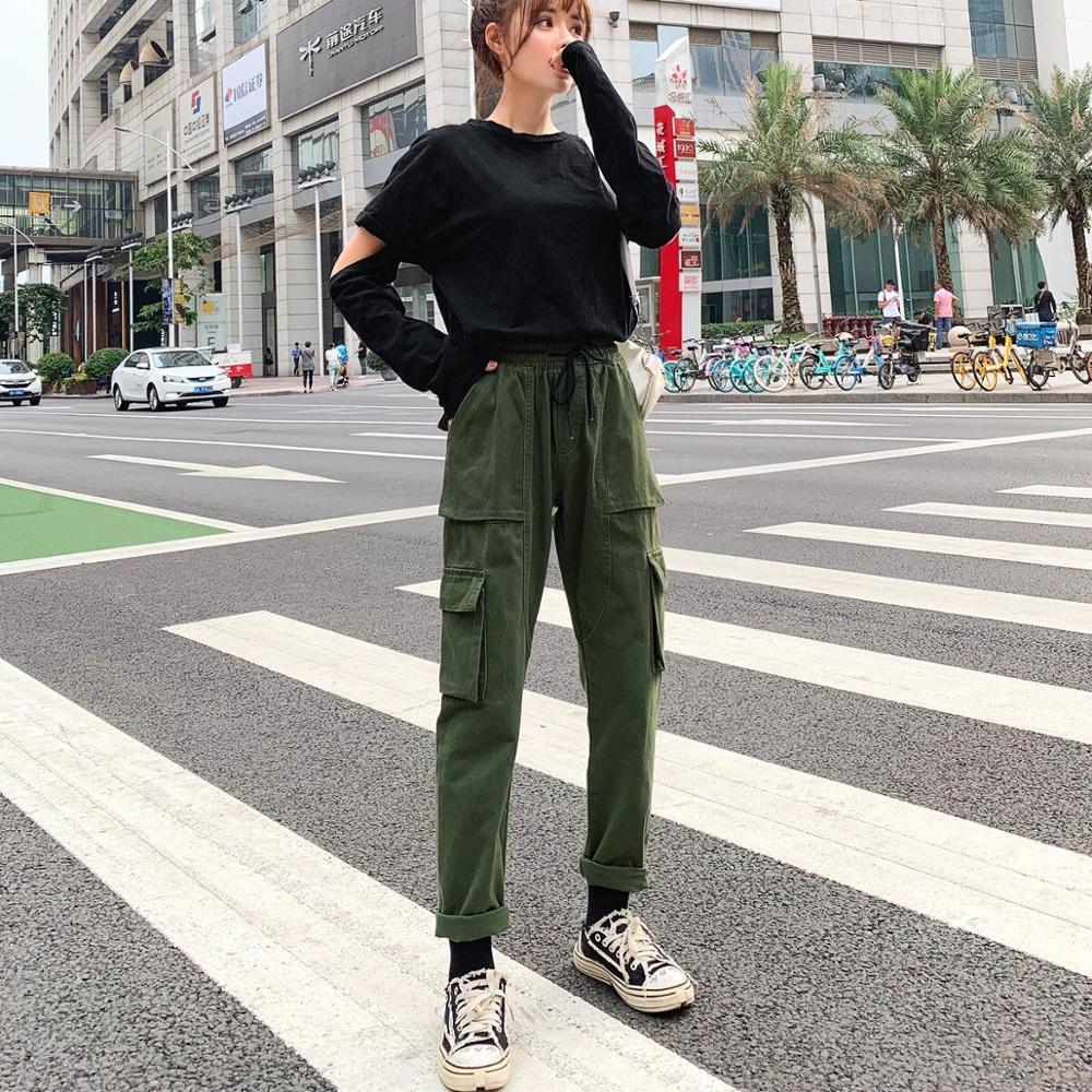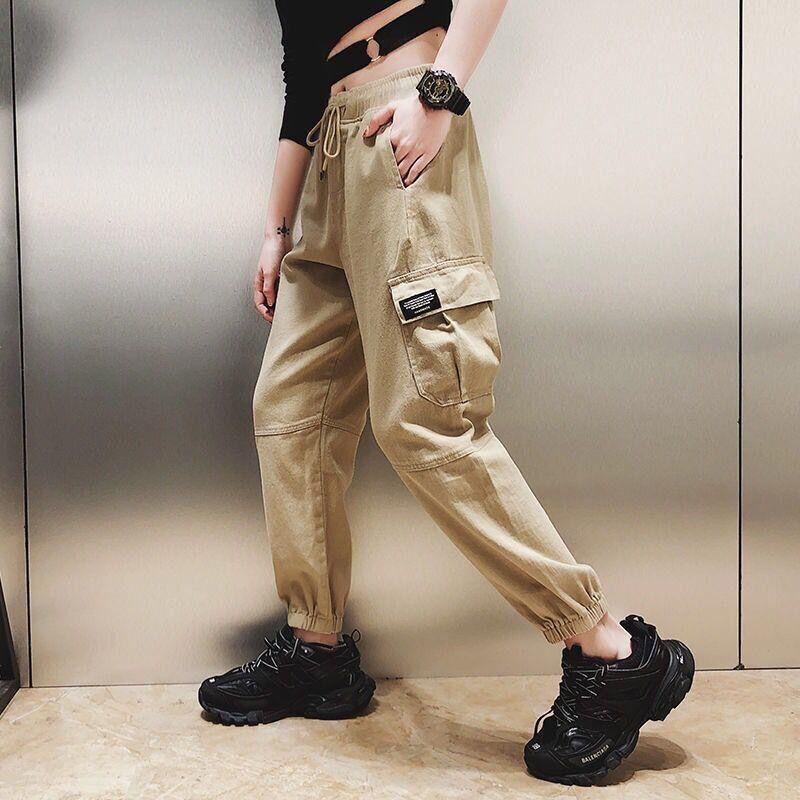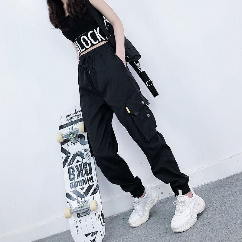 harajuku zipper streetwear women casual harem pants with chain New solid black pant cool fashion hip hop long trousers