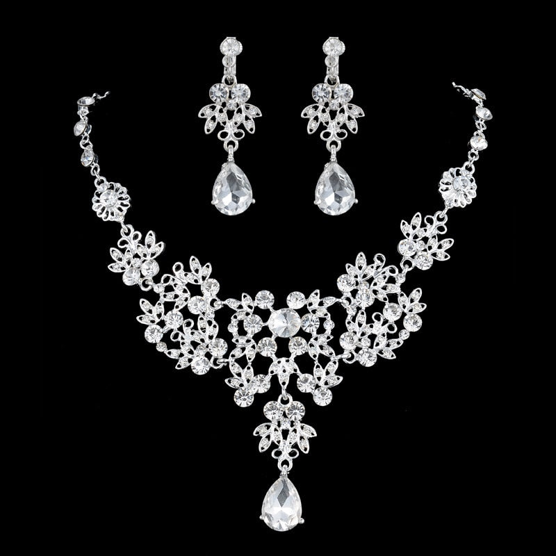 • 将图片加载到图库查看器,High Quality Fashion Crystal Wedding Bridal Jewelry Sets Women Bride Tiara Crowns Earring Necklace Wedding Jewelry Accessories