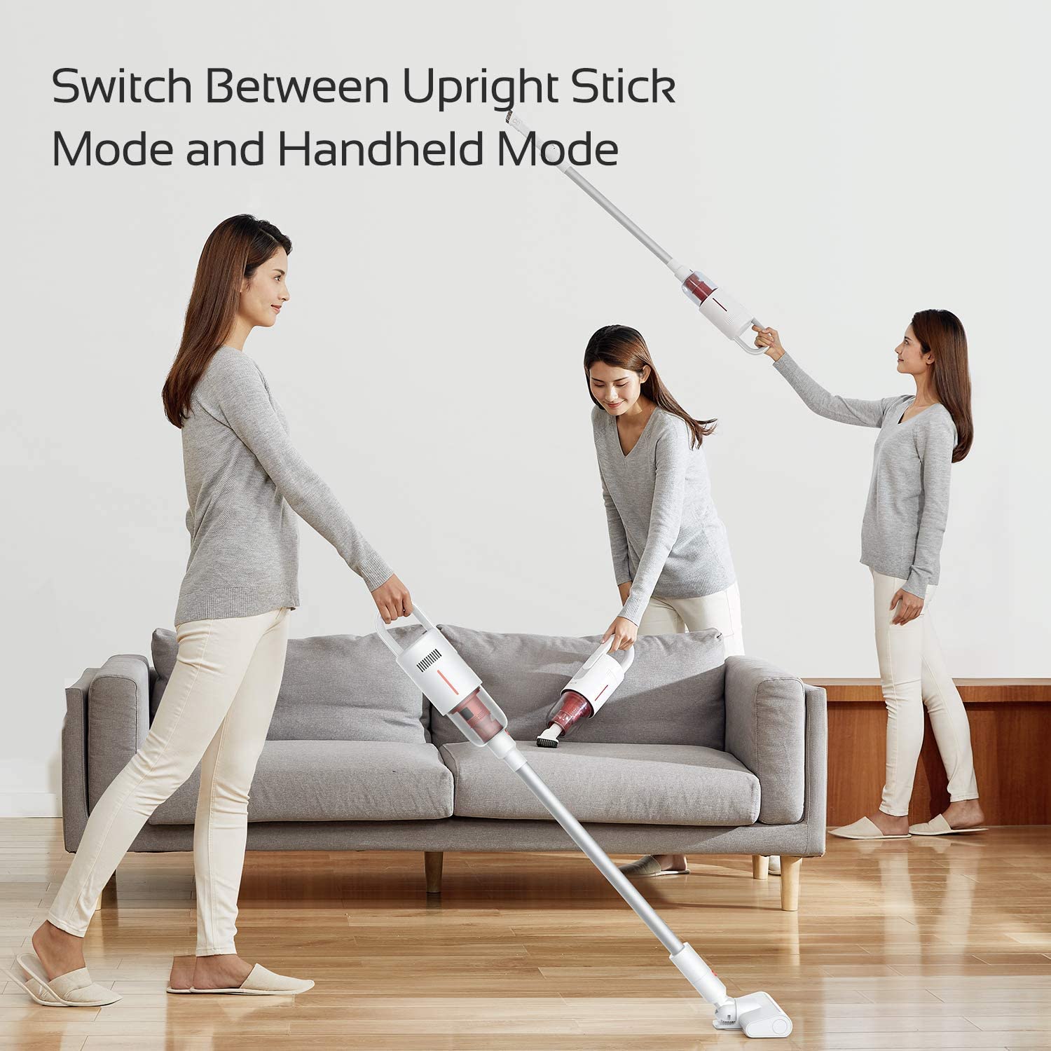 [Cord-free Convenience & 2-in-1 Handheld Vacuum] Wireless design helps you get rid of hassle of cord and still provides impressive suction power throughout your whole home. It easily transforms from a upright vacuum to a handheld vacuum, quickly absorb the dust in the hidden places.