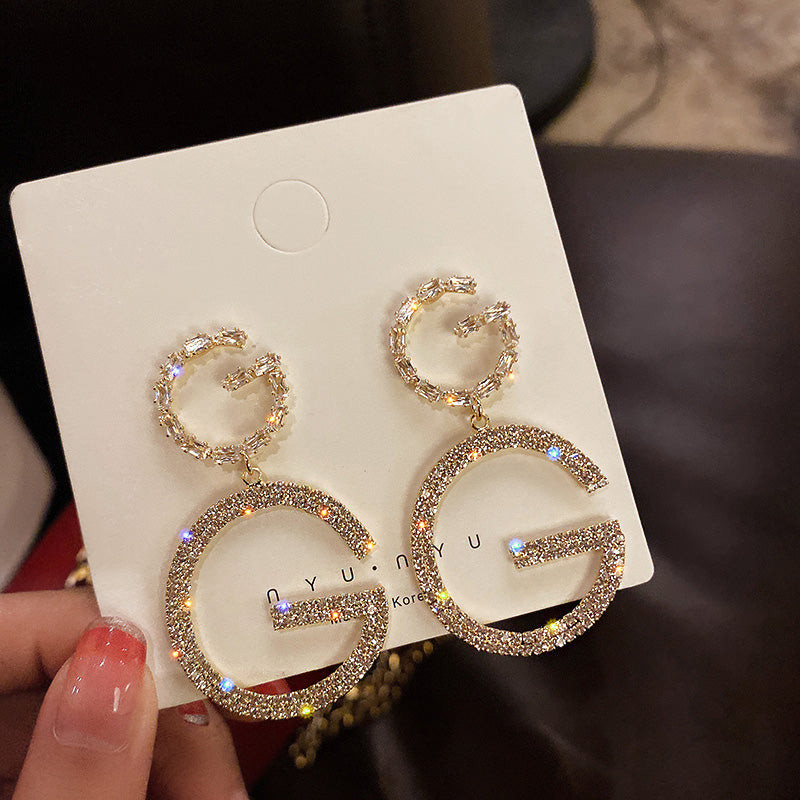 Luxury Brand Long Chain Letter G Hanging Earrings For Women Crystal Big Dangle Earring Wedding Jewelry Statement pendientes 2020