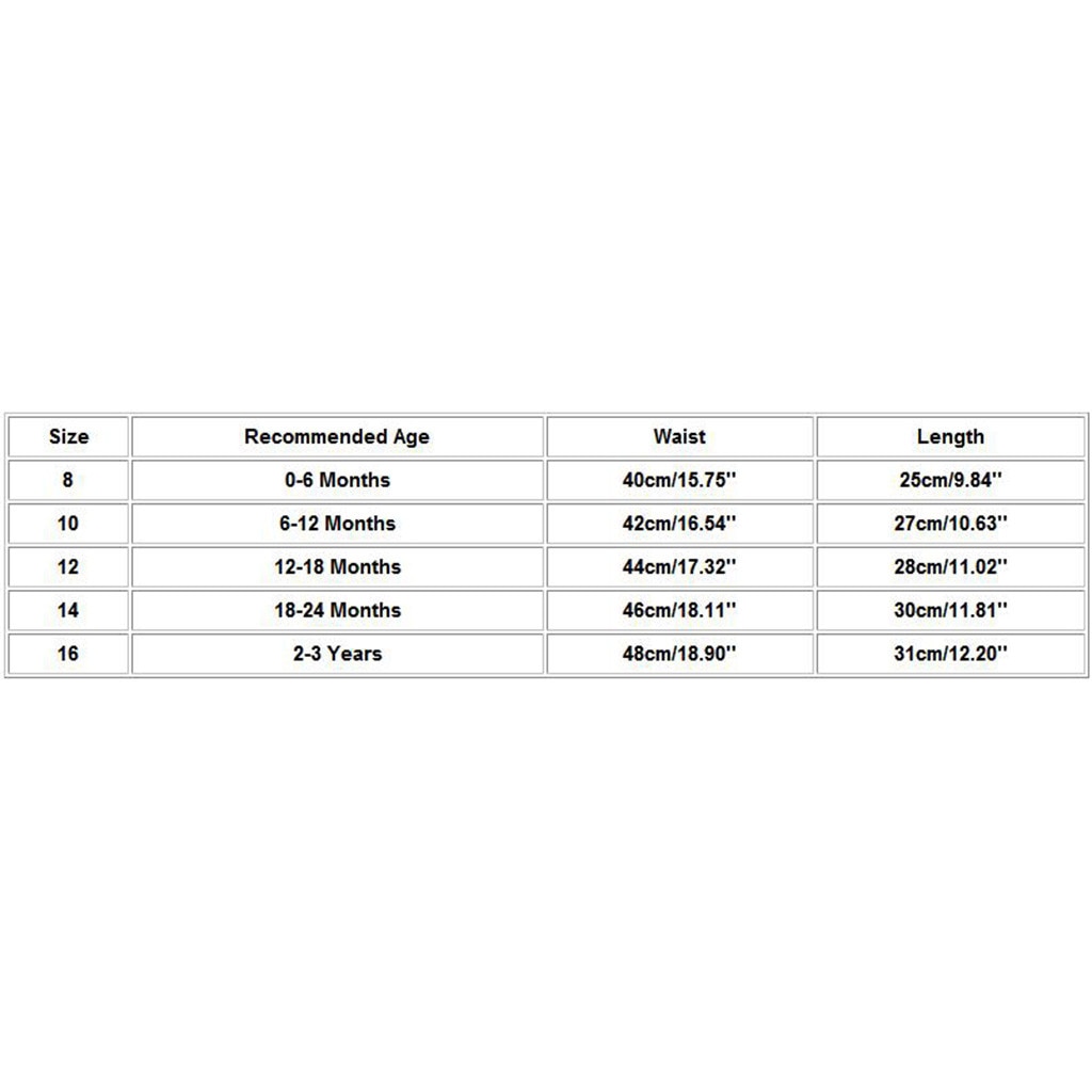 | Size | Recommended Age | Waist | Length |