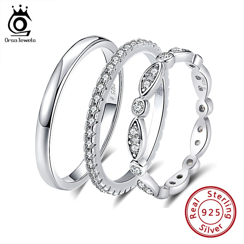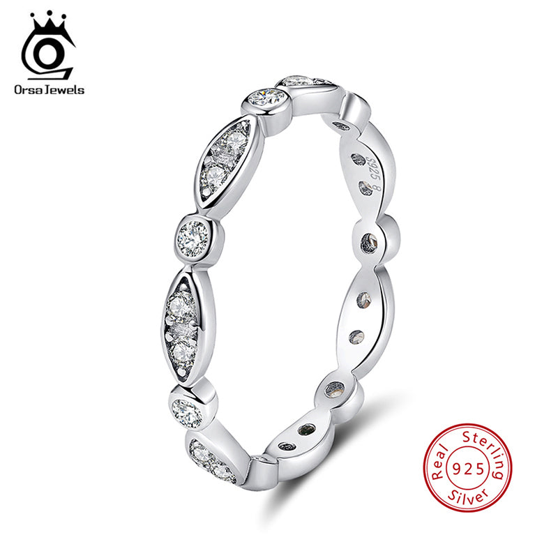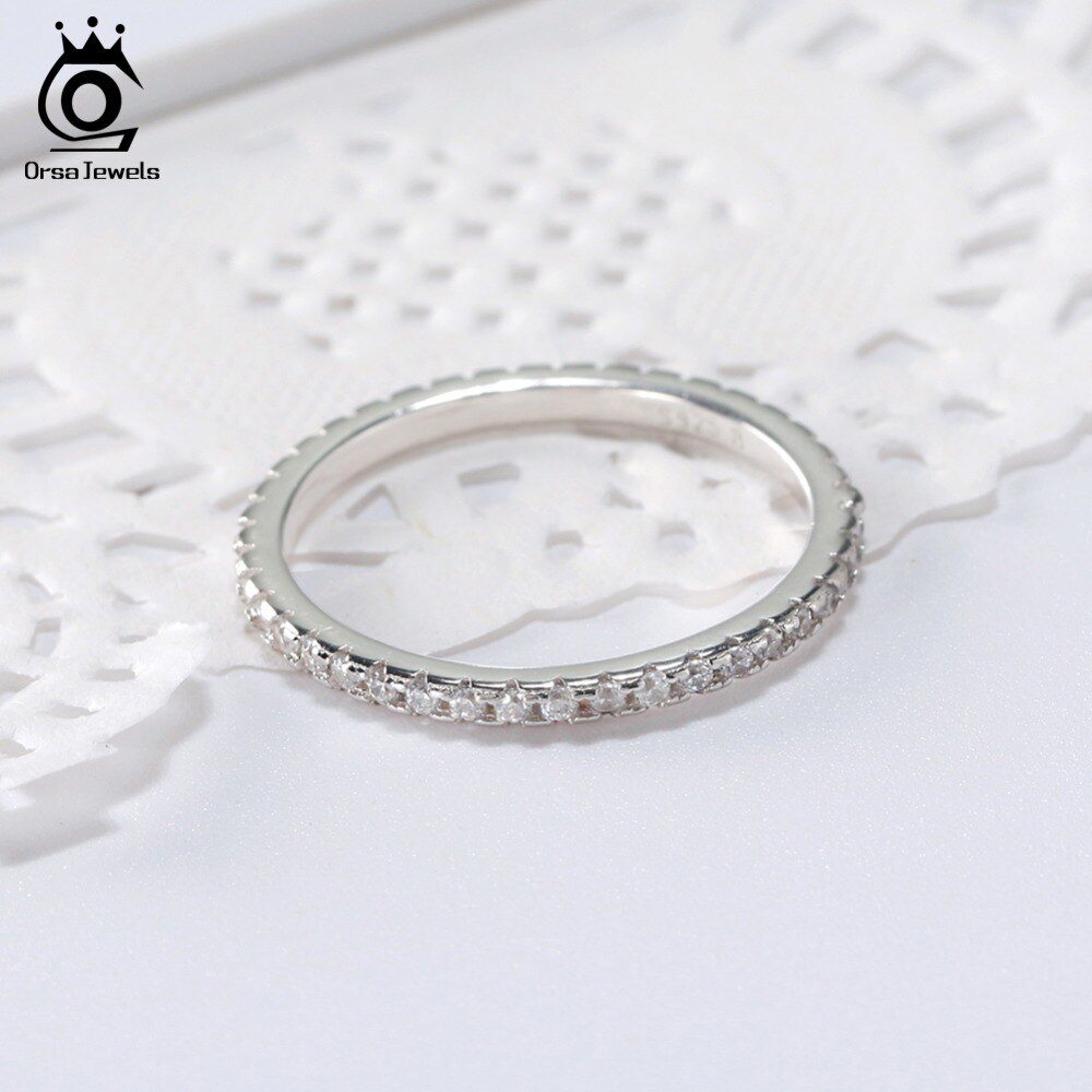 ORSA JEWELS 100% 925 Sterling Silver Rings Women Classic Round Full Pave AAA Cubic Zircon Engagement Wedding Band Jewelry SR63