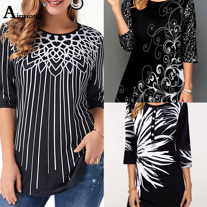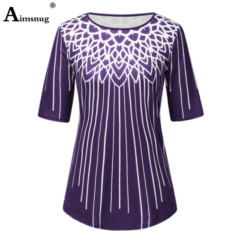 • 将图片加载到图库查看器,Plus size 4xl 5xl Women New Elegant Summer Fashion Elasticity Female Casual Loose Ladies print Top Half Sleeve T-ShirtTee Shirt