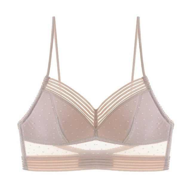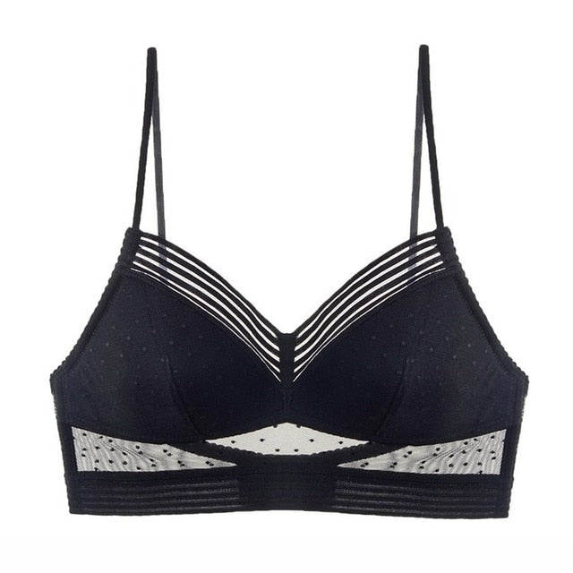 SarahBackless Strapless Bra Push Up Plus Size Women Bralette Wire Free Sexy Lace Thin Dots Mesh Lingerie Brassiere Low Back Underwear