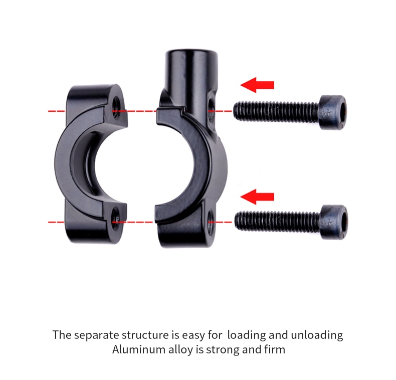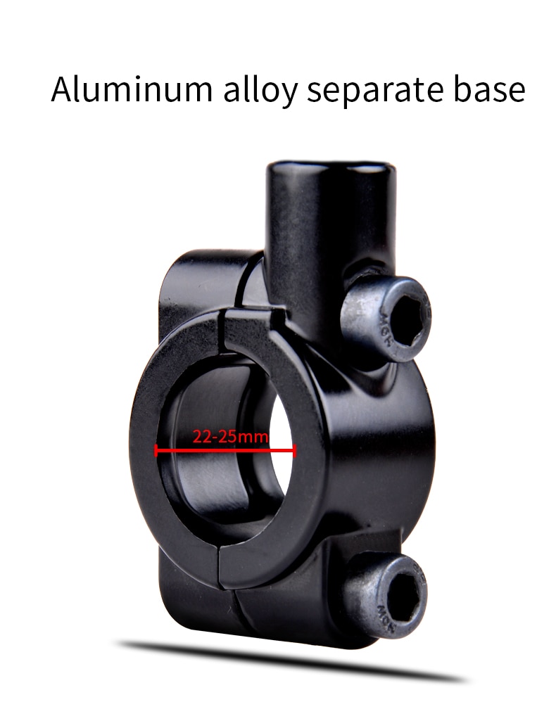 -Use for varieties of bike model, split base is universal.(suitable for bar with 22~25mm) -The separate structure is easy for loading and unloading Aaluminum alloy is strong and firm. -Multi-angle adjustment safer riding angle. -Widen and heighten mirror Larger field of view. -Double-ring screw, stable and anti-loose.