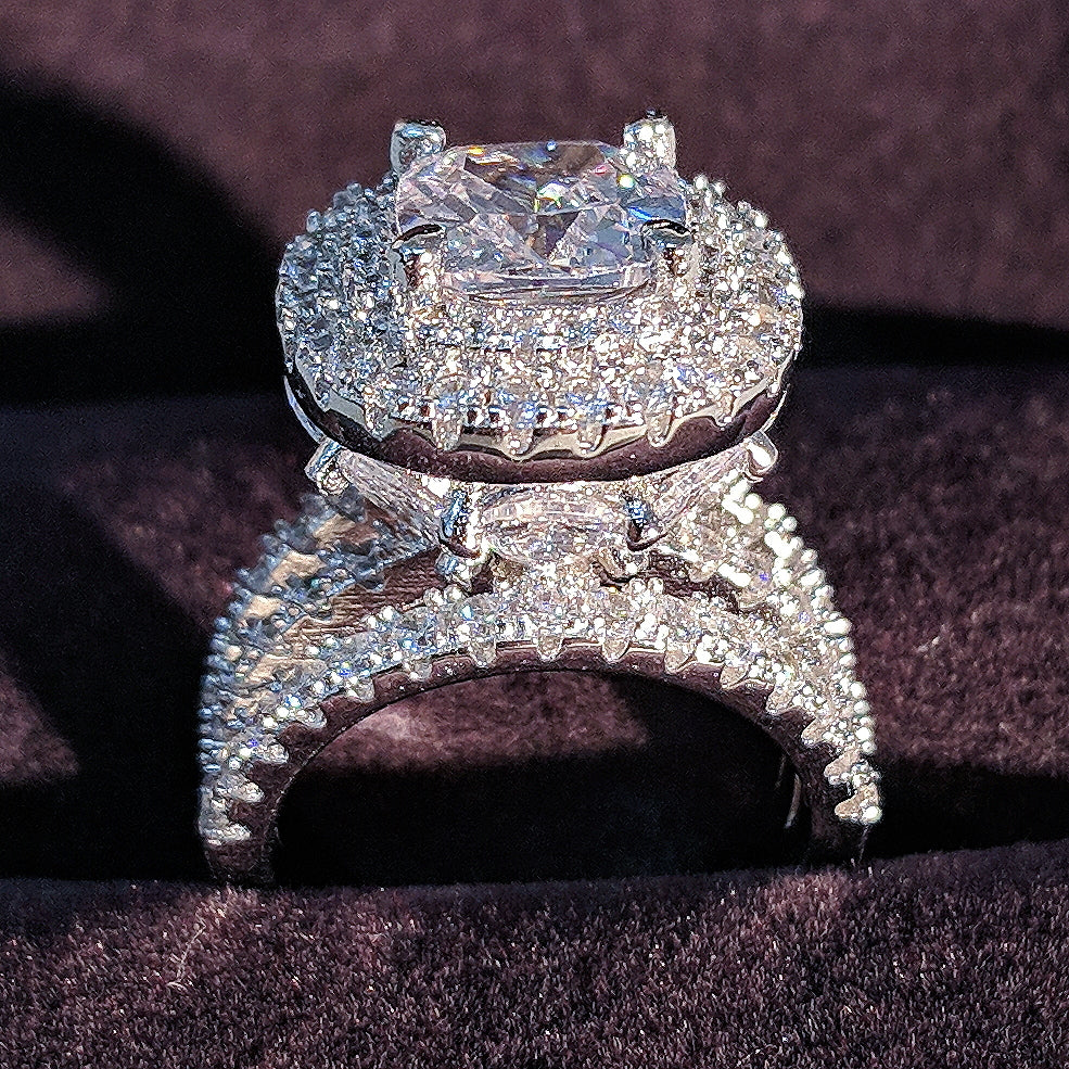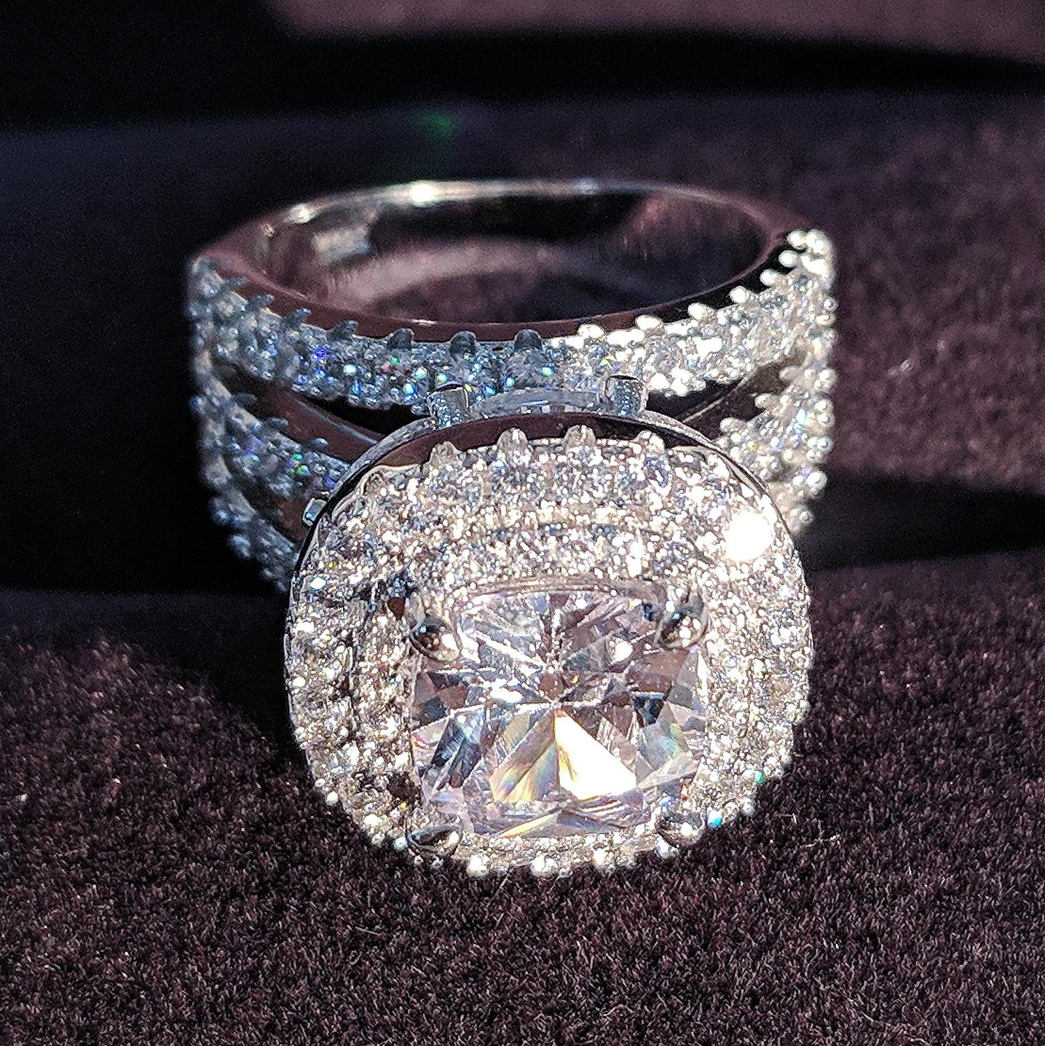 trendy luxury big 925 sterling silver engagement Ring for Women and ladys christmas gifts with cushion zirconia wedding R4898