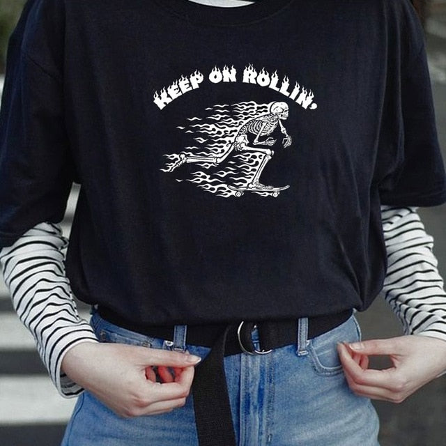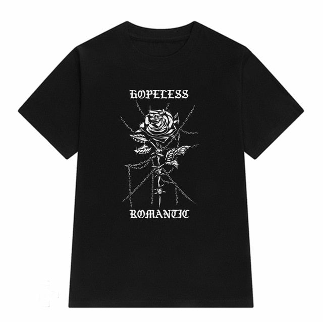 VIP HJN Japanese Style Floral Print Gothic T-Shirt Women's Grunge Aesthetic Pastel Goth T-shirts Edgy Fashion Tops